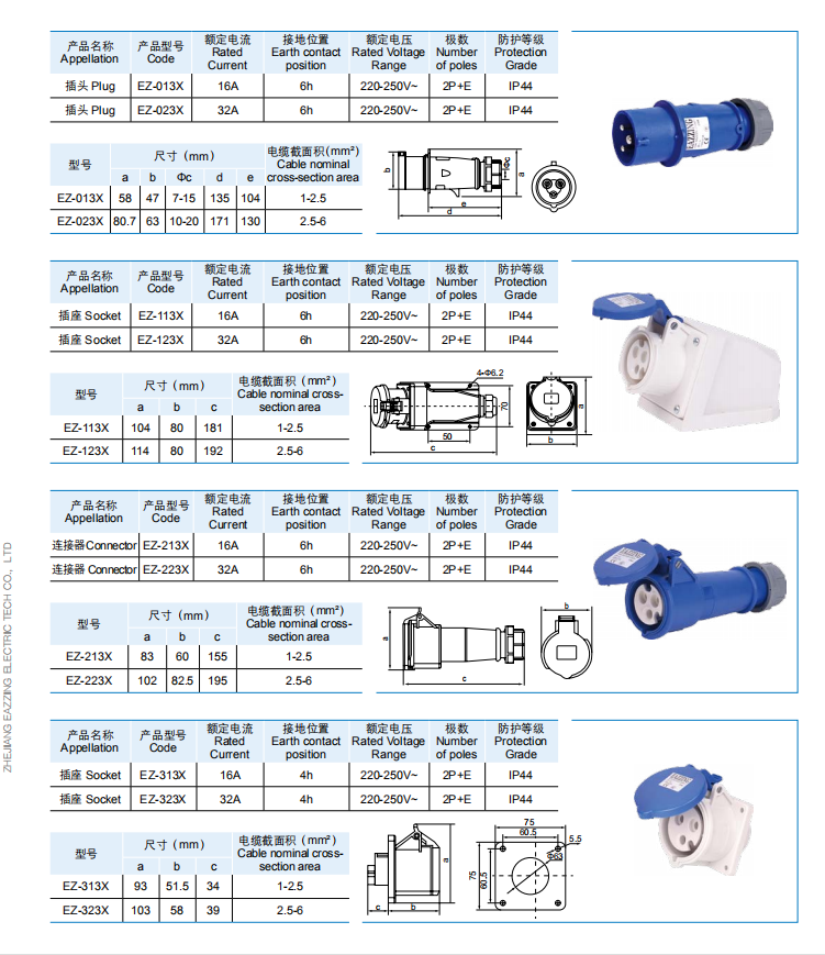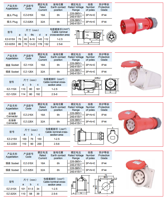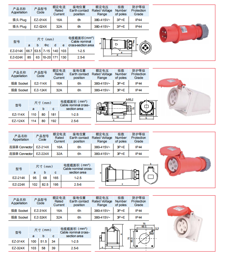三代工業(yè)插頭插座 IP44 16-32A(大圖請(qǐng)點(diǎn)擊圖片)