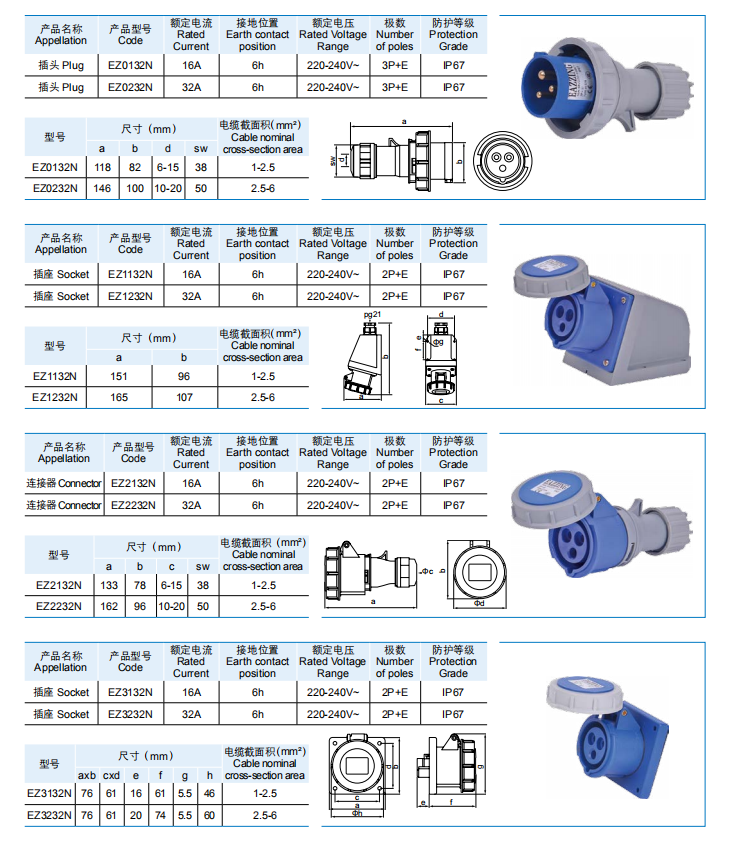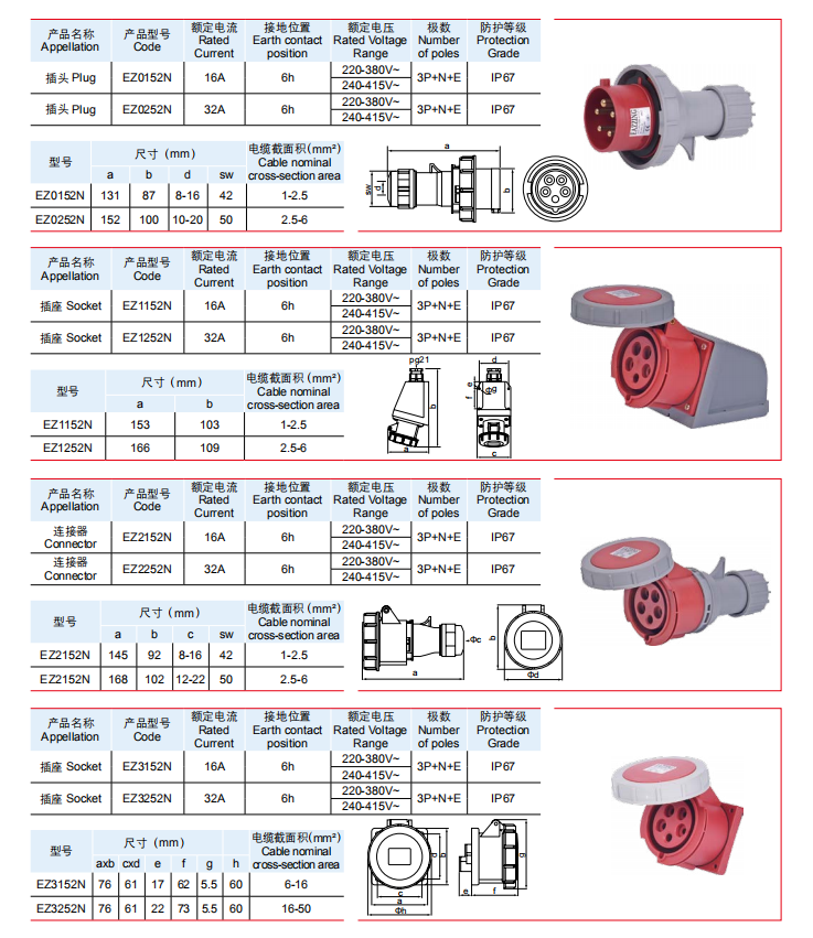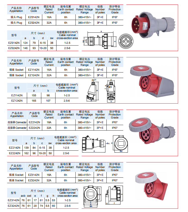 二代工業(yè)插頭插座 IP67 16-32A(大圖請(qǐng)點(diǎn)擊圖片)