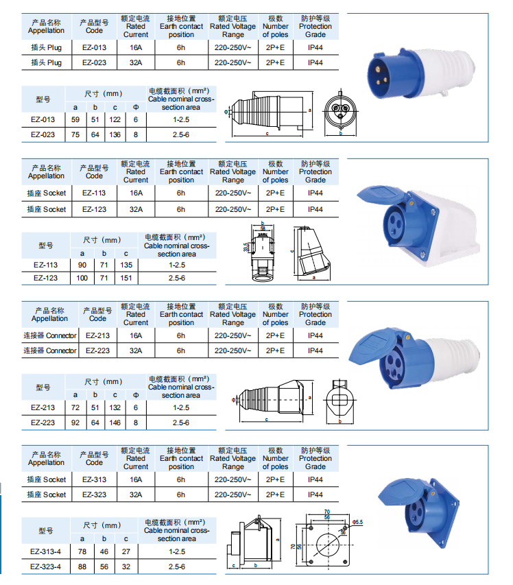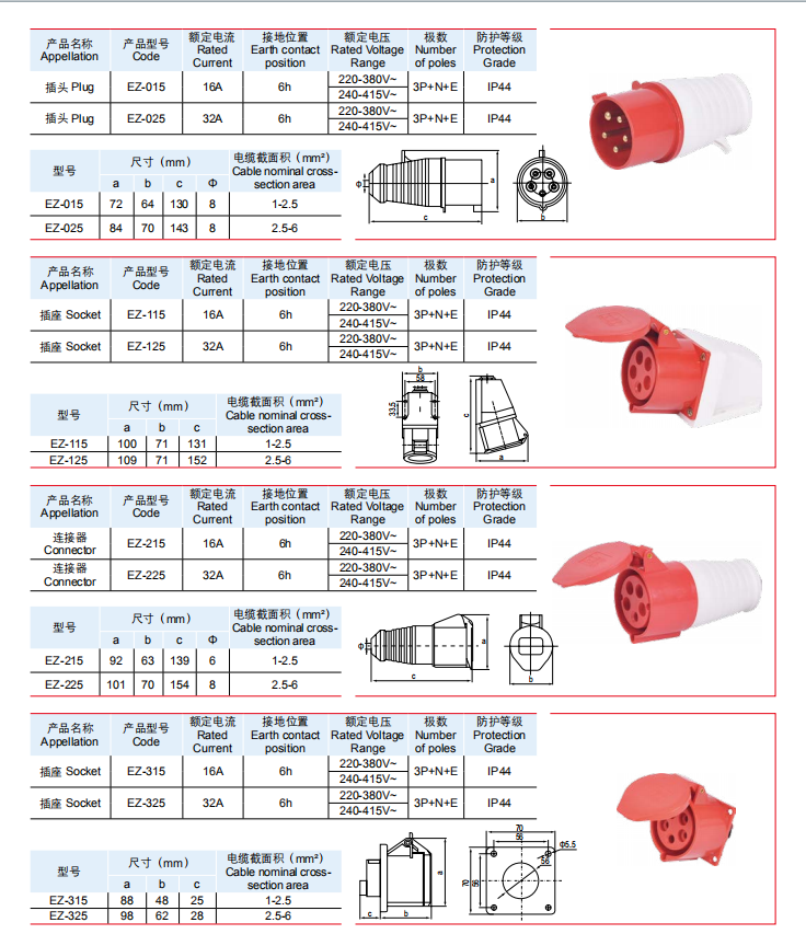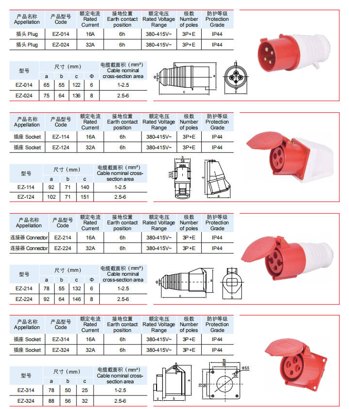 一代工業(yè)插頭插座 IP44 16-32A(大圖請點擊圖片)