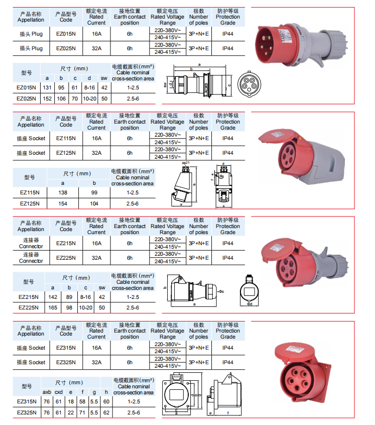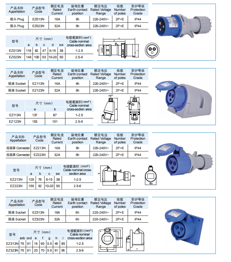 二代工業(yè)插頭插座 IP44 16-32A(大圖請(qǐng)點(diǎn)擊圖片)